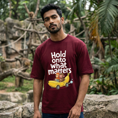 Product Information: Colour: MaroonMaterial: 100% Cotton, 240 GSMStyle: Oversized Fit, Round Neck, Short Sleeves Wash Care: Machine wash. Wash in cold water, use a mild detergent. Dry in shade, do not iron...