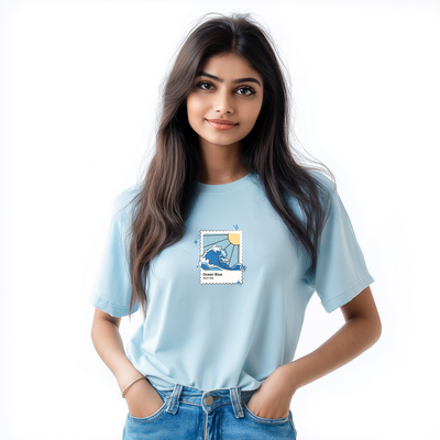 Product Information: Colour: Baby BlueMaterial: 100% Cotton, 240 GSMStyle: Oversized Fit, Round Neck, Short Sleeves Wash Care: Machine wash. Wash in cold water, use a mild detergent. Dry in shade, do not...