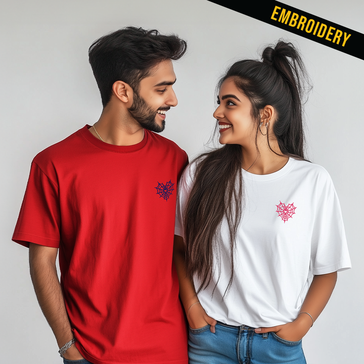 Webs Oversized Couple Embroidered T-Shirt