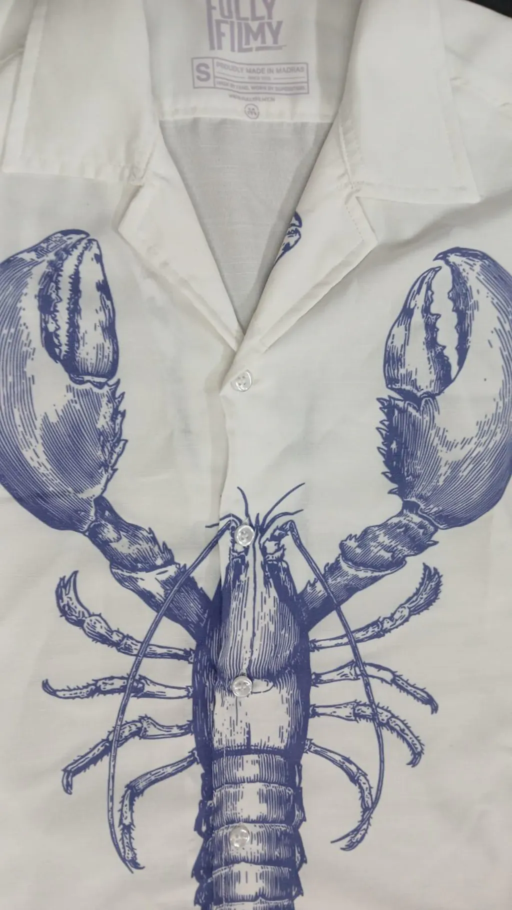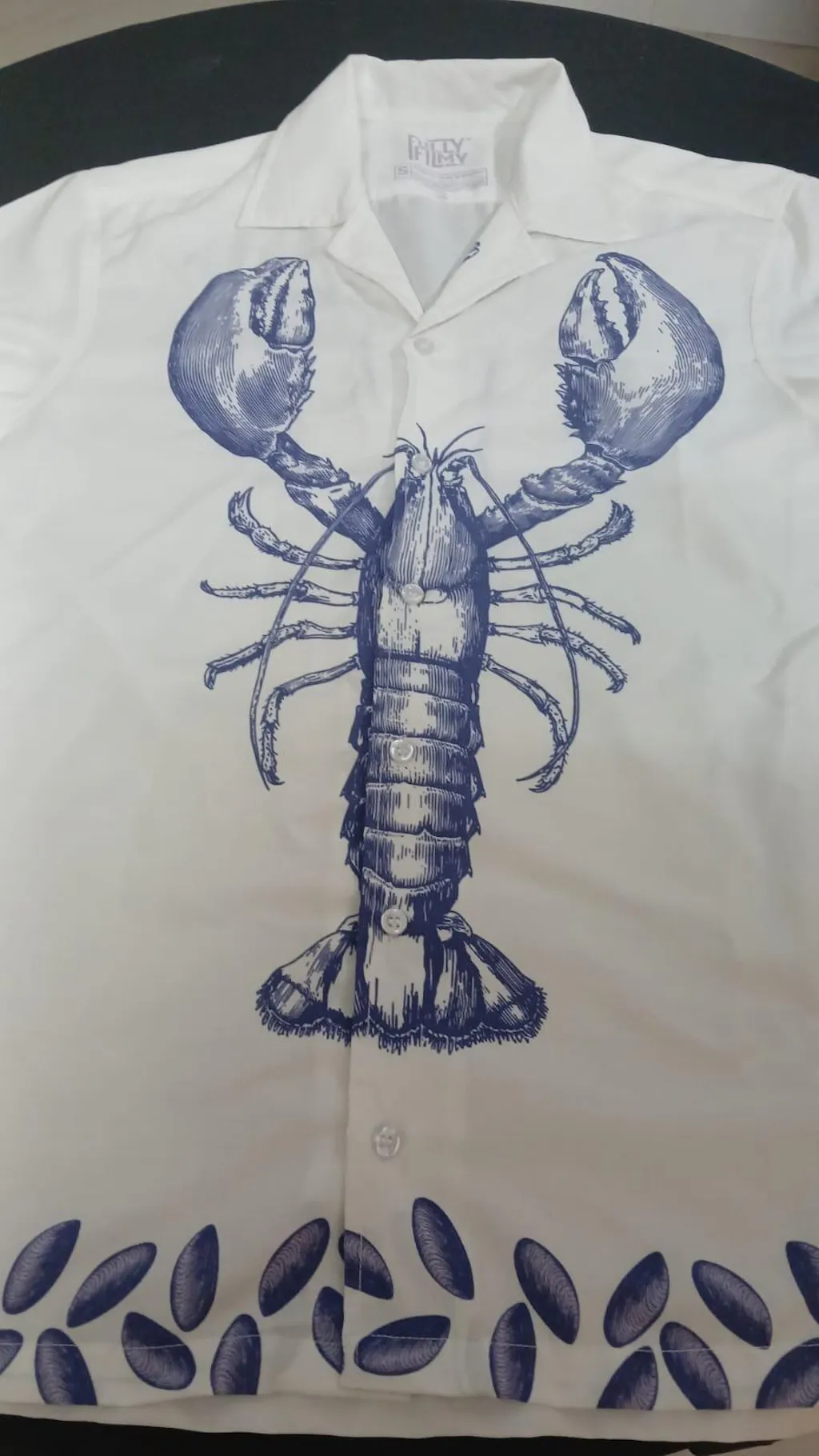 🦞 A striking blue-on-ivory hand-drawn crustacean taking center stage
