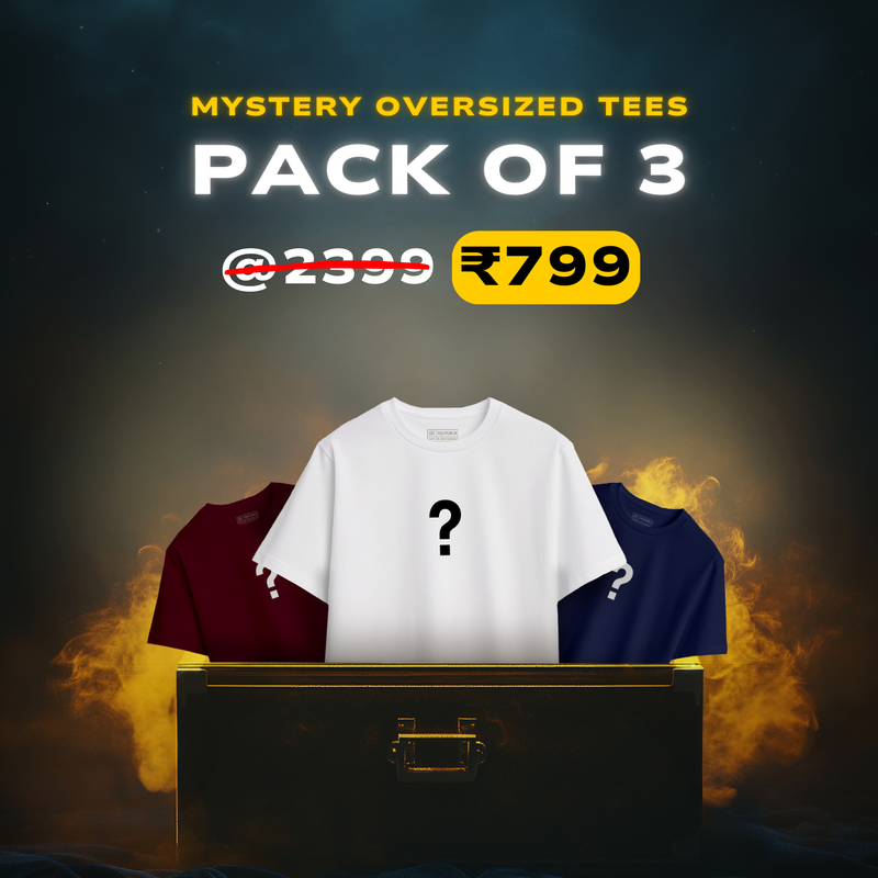 Love the thrill of the unknown? The Fully Filmy Mystery Oversized T-Shirt Pack is here to surprise you with 3 handpicked oversized tees from our collection—featuring iconic movie references, cult classics, and pop culture gems!