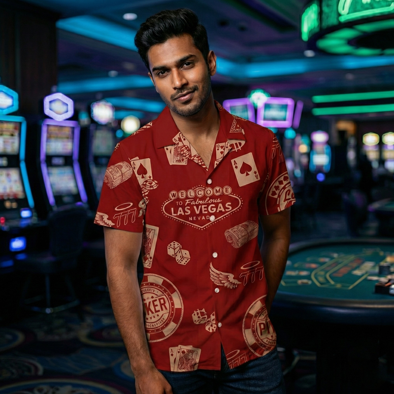 Bring the casino heat to your closet with this high-stakes, high-style shirt that’s flush with Las Vegas flair. Whether you’re bluffing on the beach or stacking chips at brunch, this is your royal flush in fabric form.